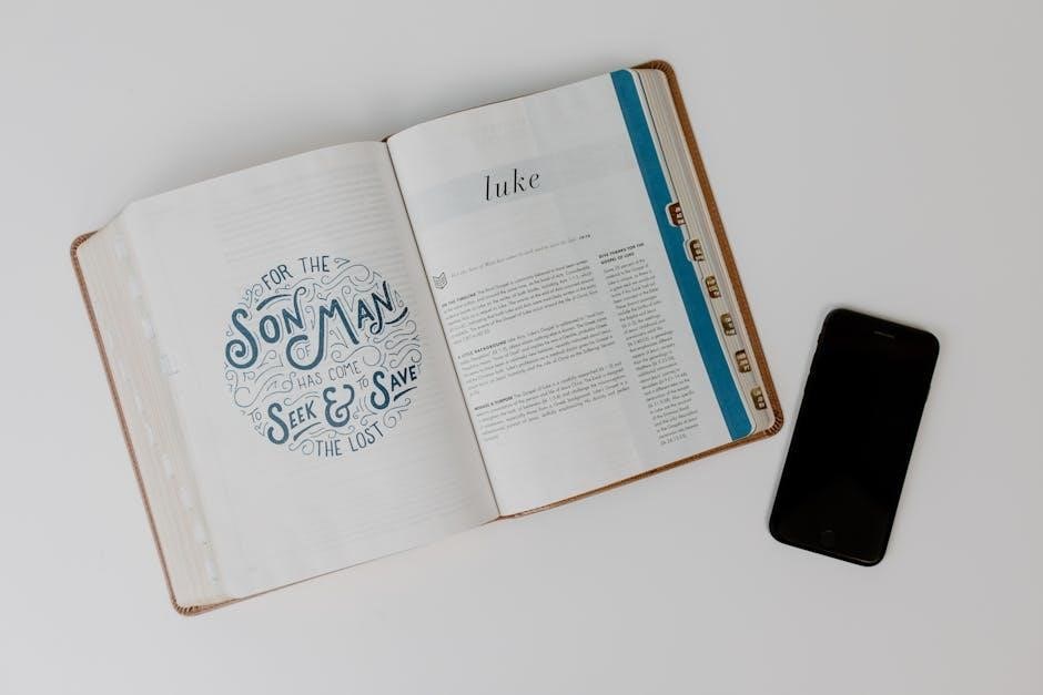 Downloading and printing the 5-Year Bible Reading Plan PDF is a straightforward process that ensures you have a physical copy for easy reference. Most plans are available as free downloads from reputable Christian websites or ministries; Once downloaded, you can print the entire document or specific sections to suit your needs. For best results, use high-quality paper and consider binding the pages for durability. Adding a cover page or divider sheets can enhance organization. If you prefer a professional finish, local print shops can assist with spiral binding or laminating. Printing your plan allows you to highlight passages, jot down notes, and keep track of your progress effortlessly. This physical copy becomes a valuable companion on your spiritual journey.